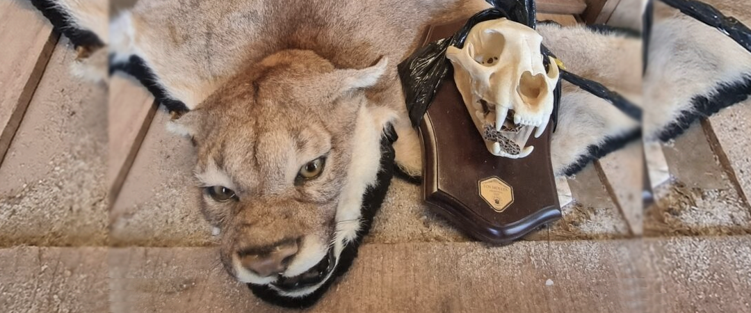 Imagen principal: Una piel de puma confiscada durante los allanamientos a las propiedades de Caza & Safari. Foto obtenida durante la investigación de Mongabay Latam.